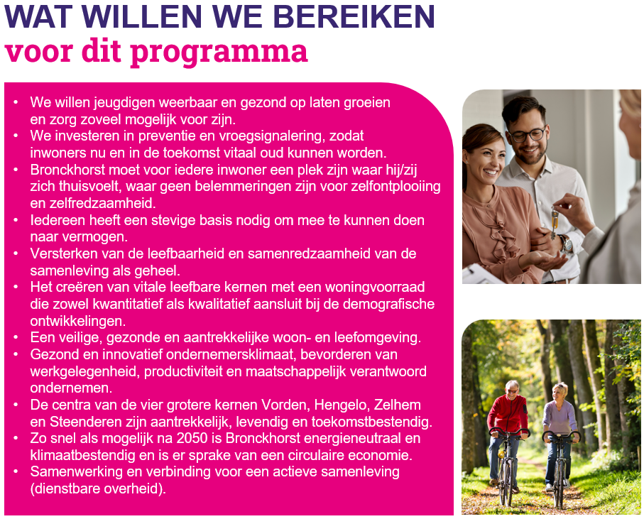 Meerdere doelen bereiken we door in de verschillende programma’s samen te werken. Om die reden komt een aantal doelen bij meerdere programma’s terug.