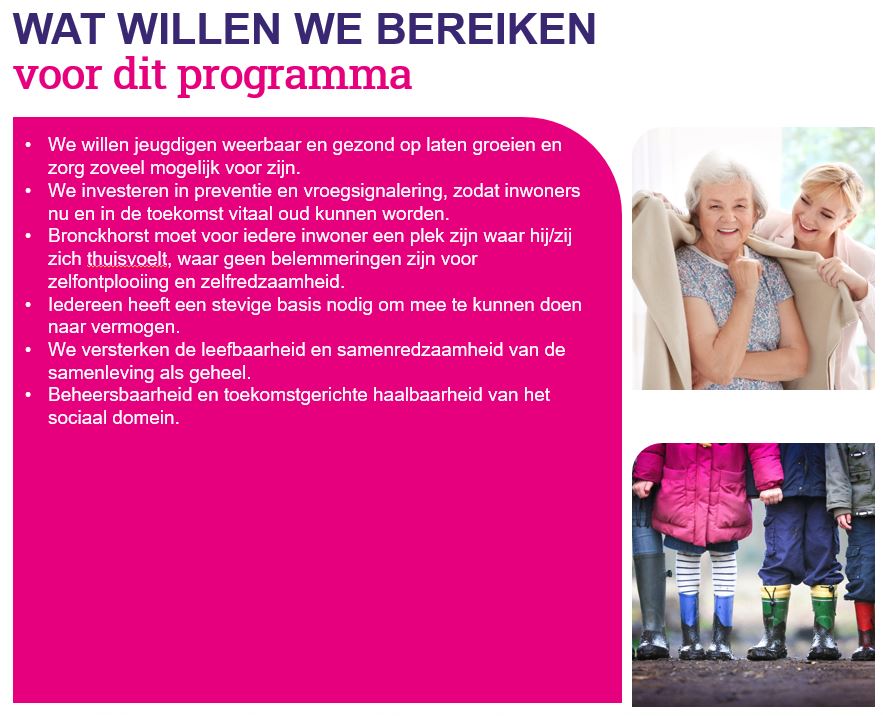 Meerdere doelen bereiken we door in de verschillende programma’s samen te werken. Om die reden komt een aantal doelen bij meerdere programma’s terug.